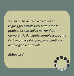 Sono Laura Giudici e pratico l’Astrologia perché dà accesso alla lettura simbolica del Cielo come strumento di conoscenza di sè e delle cose del mondo. Ho percorso questo cammino fin qui con il prezioso contributo di maestri tra i quali Marco Gerosa, Marco Pesatori, Anna Elisa Albanese, Rossana Strika, Roberta Turci. Sono socia certificata e Astrologa iscritta all'Albo Professionale CIDA (Centro Italiano di Astrologia) e continuo a studiare...